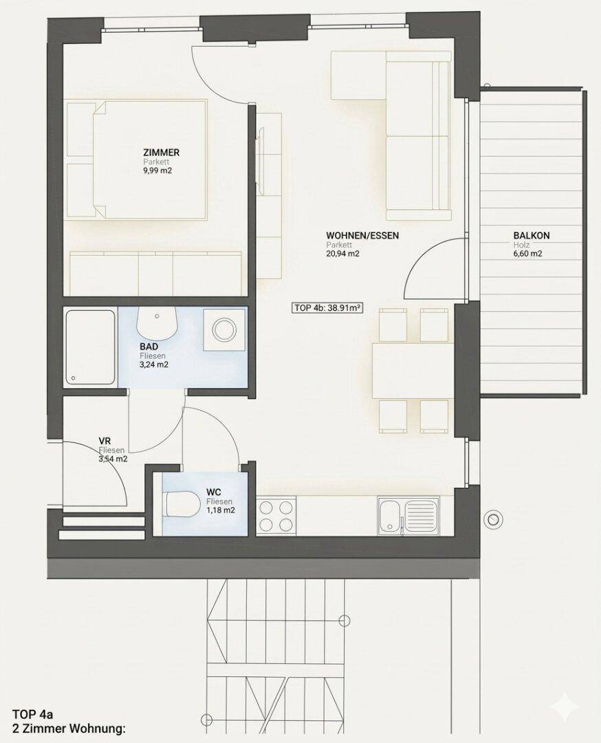 Erstklassige 2-Zimmer-Wohnung mit Balkon und eigenem Autoabstellplatz in der Höttinger Au