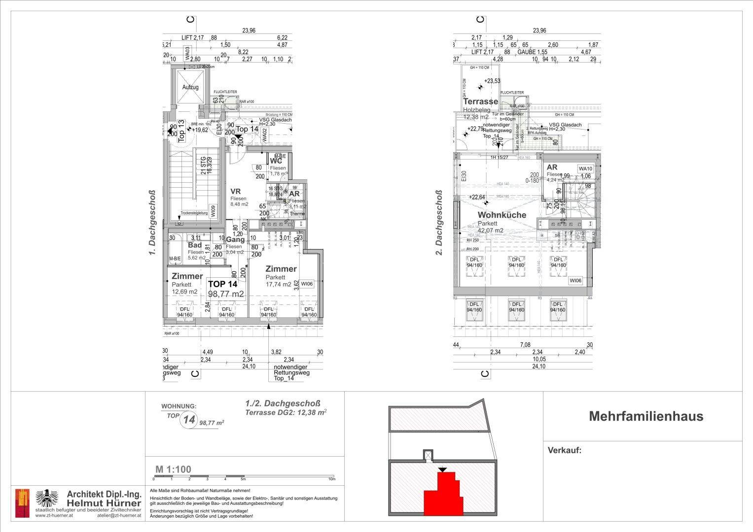 Exklusive Dachgeschosswohnung mit 2 Terrassen nahe Augarten – Ruhelage & Fernblick