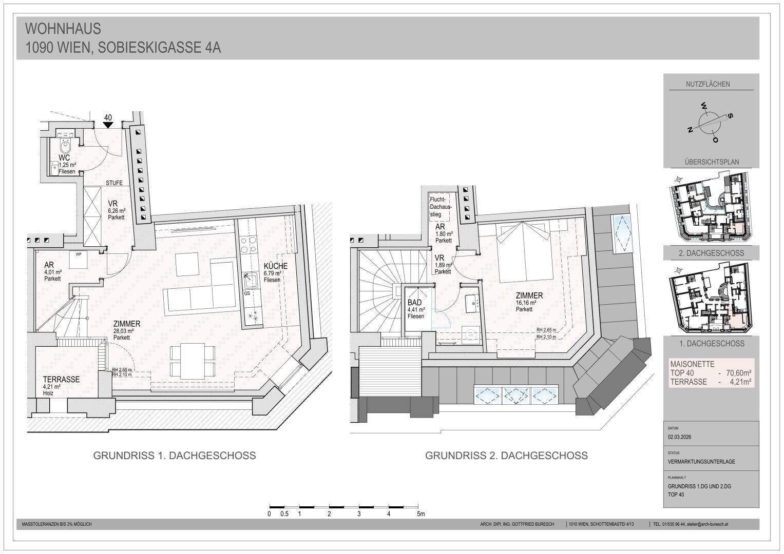 Dachgeschoss - 2-Zimmer-Maisonette mit Terrasse im Erstbezug – Wohnen über den Dächern Wiens!