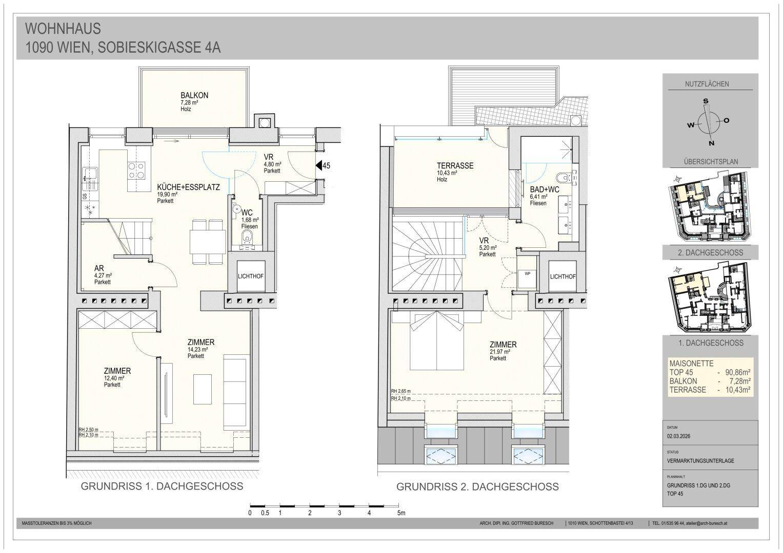 Exklusive Maisonette 3-Zimmer-Dachgeschosswohnung mit zwei Freiflächen! Erstbezug!