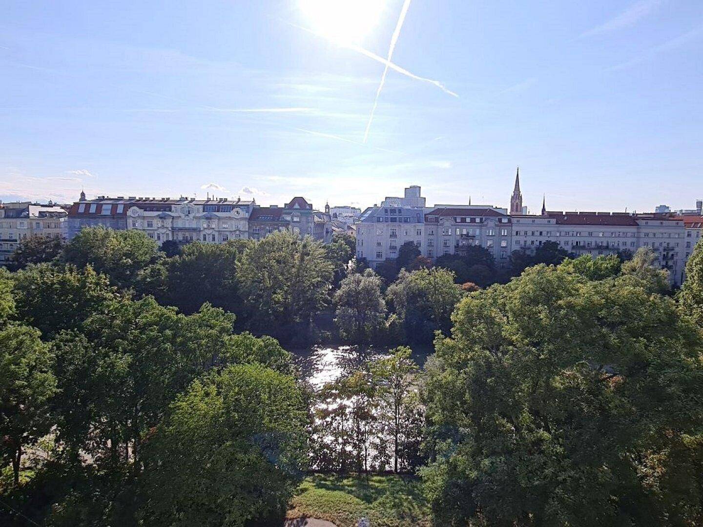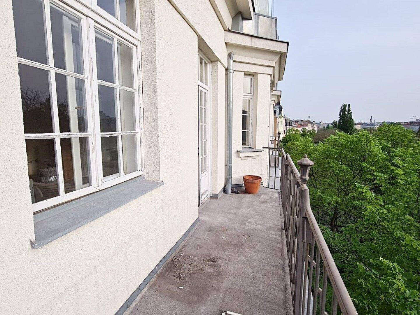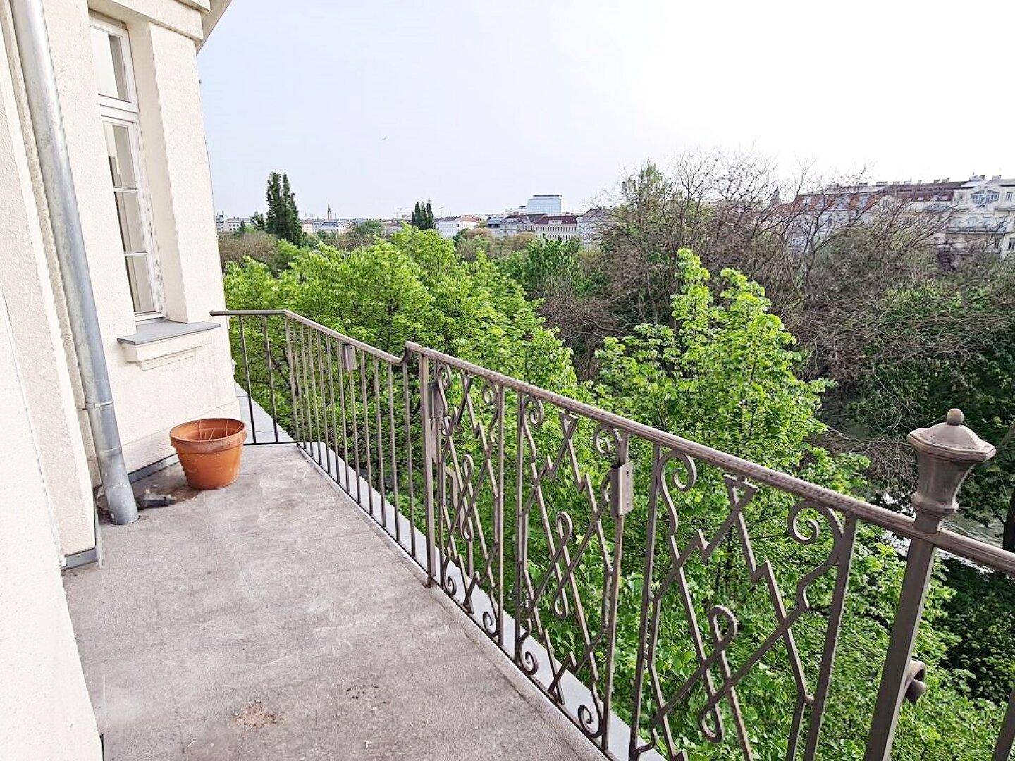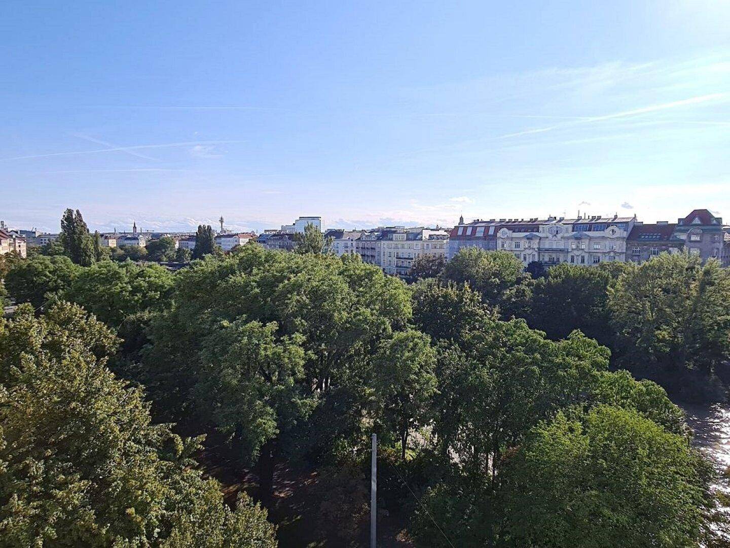 GRÜNBLICK, Schüttelstraße, 135 m2 Altbau mit Balkon und Loggia, 4 Zimmer, Wohnküche, 2 Bäder, Parketten, Fernblick