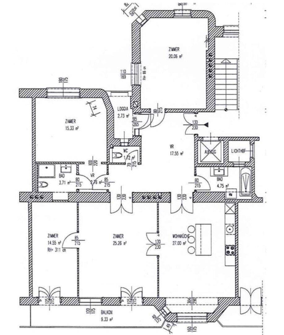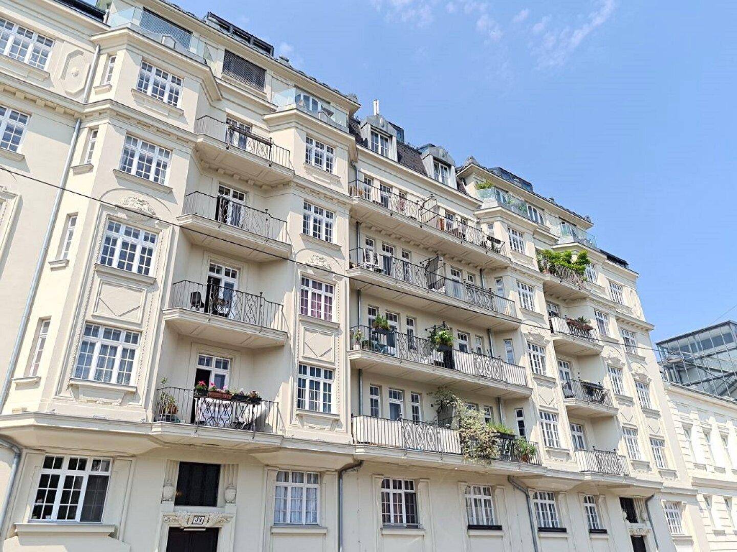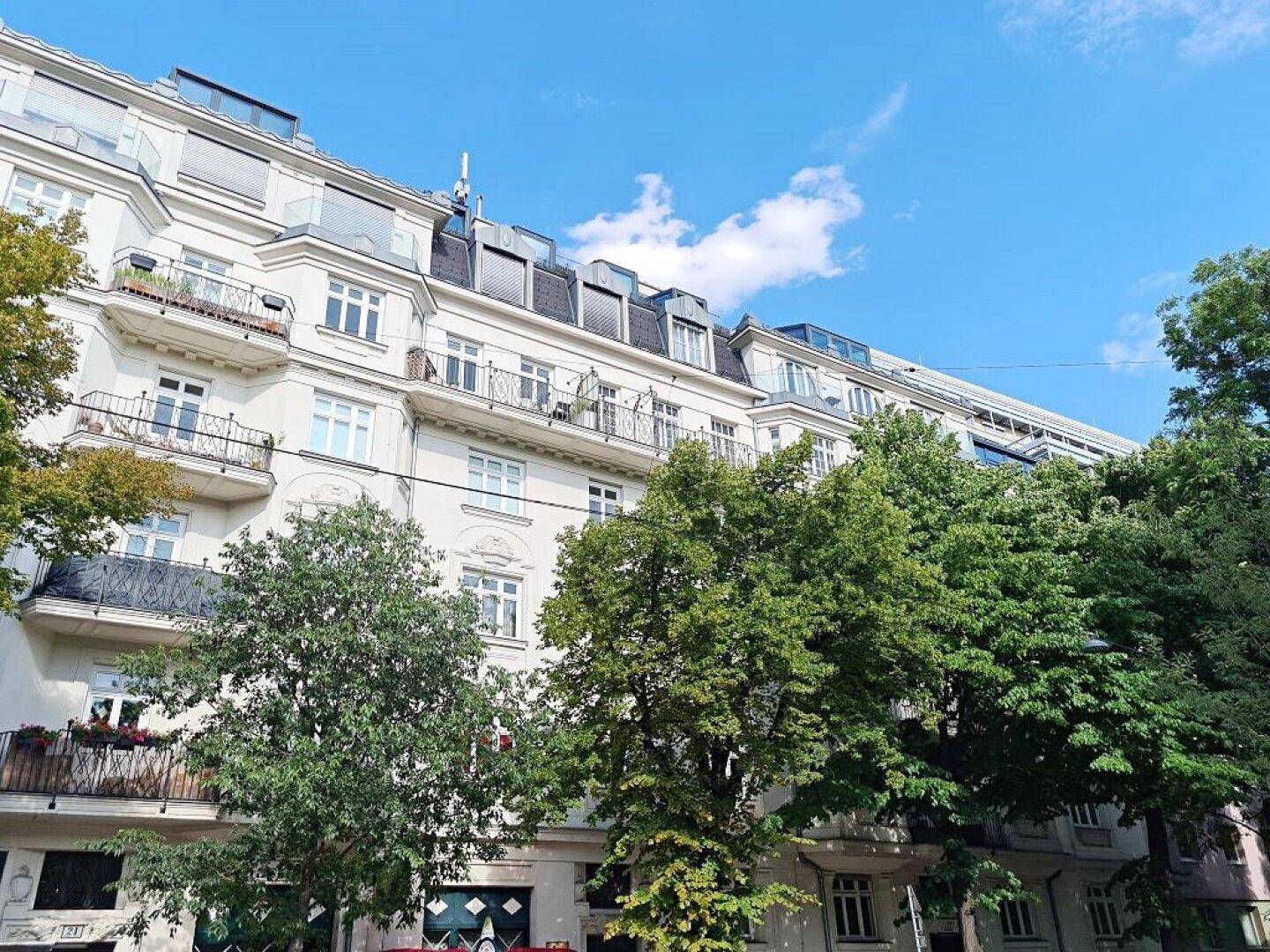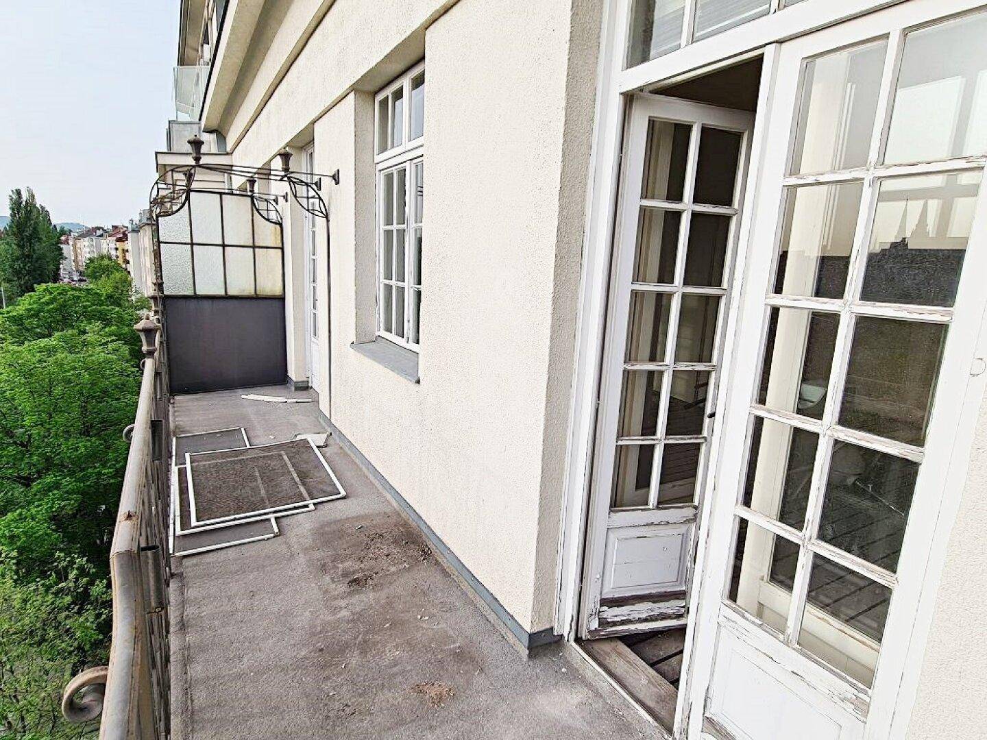 GRÜNBLICK, Schüttelstraße, 135 m2 Altbau mit Balkon und Loggia, 4 Zimmer, Wohnküche, 2 Bäder, Parketten, Fernblick