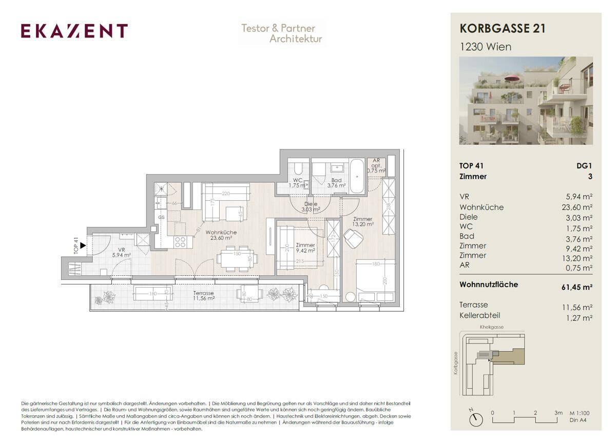 3-Zimmer-Dachgeschosswohnung | 23 m² Wohnküche |Terrasse